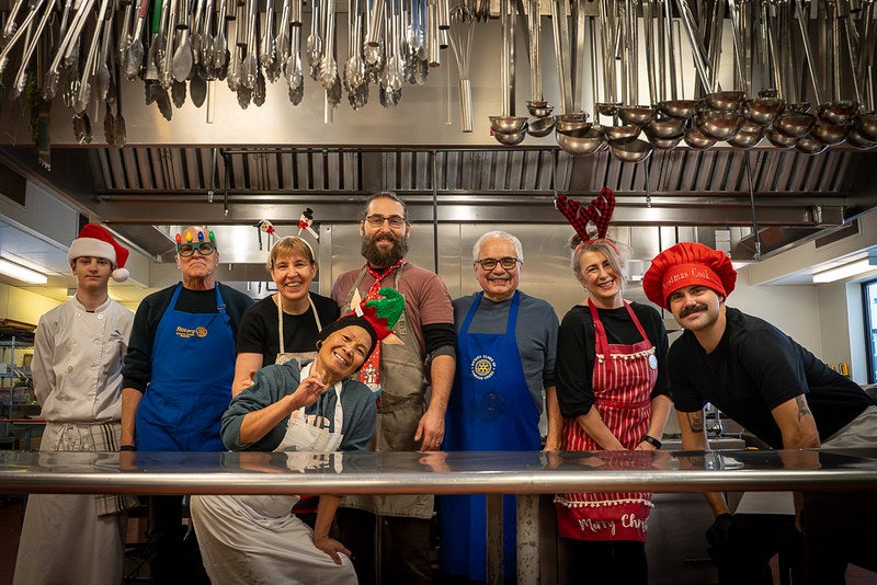 In preparation for Rotary Sunrise Dawson Creek’s annual Community Christmas Dinner on December 7, Chef Reagan King and the Professional Cook students cooked 16 turkeys. Rotarians, students, and faculty then volunteered to slice up the turkeys and make all the fixings to go with it, including about 100 litres of gravy. They prepared enough food for more than 400 people.