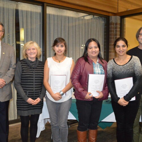 “I’m so proud of the students,” said History instructor Eva St. Jean. “They all work quite hard to get their essays submitted, and to see this come back as a result is very rewarding.” Kendra Michel, Katherine Fang, and Rajbir Kaur were on hand to present their work.