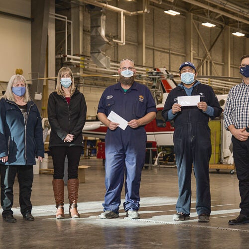 The Northern Lights College Foundation presented two memorial awards to Aircraft Maintenance Technician students on October 28, 2021 during an event held in the aerospace hanger on the Dawson Creek Campus.