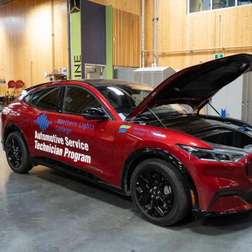 The NLC Foundation received a significant donation to offset the cost of an electric vehicle for the Automotive Service Technician program in Fort St. John. NLC has a long-standing relationship with the Bannister group in Dawson Creek, so when they brought forward the opportunity to help with the EV for the program, we were thrilled to move this forward.