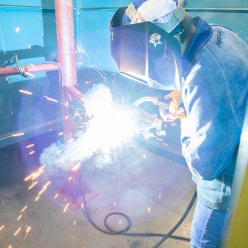 When Shawnacy Emde first stepped into the welding booth at the Northern Lights College Trades Training Centre, she was a little nervous. The Grade 11 student had never experienced holding fire in her hands, so to speak.
