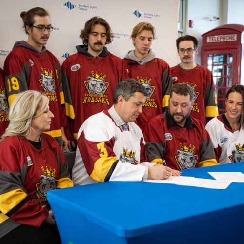 Northern Lights College (NLC) is pleased to announce they have signed a memorandum of understanding (MOU) with the Dawson Creek Kodiaks Junior B hockey team, putting the two organizations into a partnership to increase enrolment at NLC and financially support the Kodiak athletes with scholarships and bursaries.