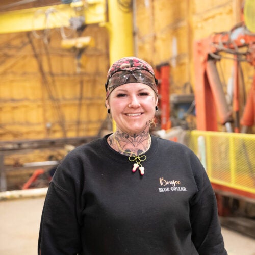 Now she works for OCL, building materials for OSB mills — which she says is more reliable than oil and gas work. Not only does she get to work in a shop, she’s also home for dinner every night. There was a time, however, when she wasn’t sure she’d get to work in a shop. There aren’t many female welders hired to work in shops so most of them must work in the field.