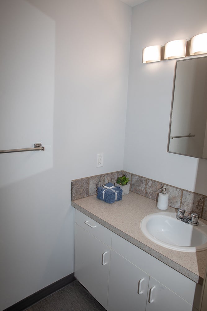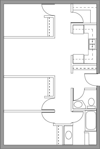 The two bedroom accessible suite is the same as the regular two bedroom suite in Dawson Creek housing, but has added accessibility features.